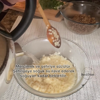2- Mercimeğin suyunu süzdüm, ayrı bir kaba aldım.